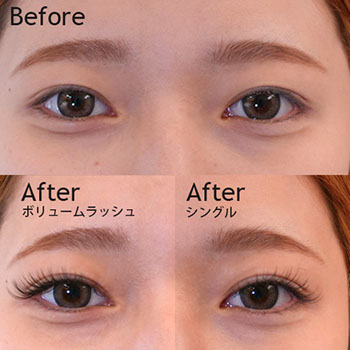 ・見た目がシンプルですっきりと自然な印象を与える「シングルラッシュ」(​元のまつ毛1本に対してエクステ1本)