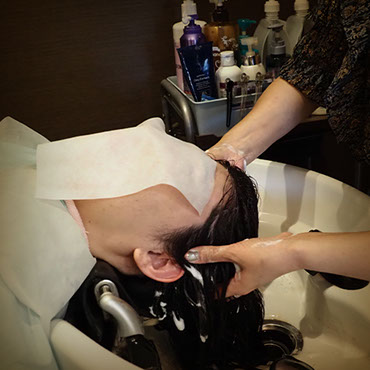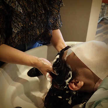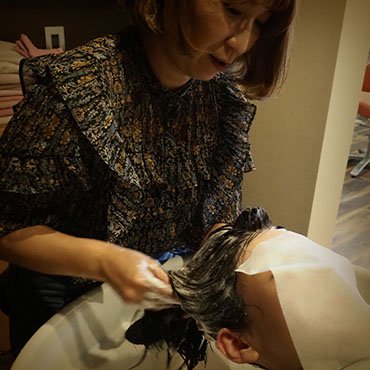 炭酸水シャワーを使用した丁寧なシャンプーと